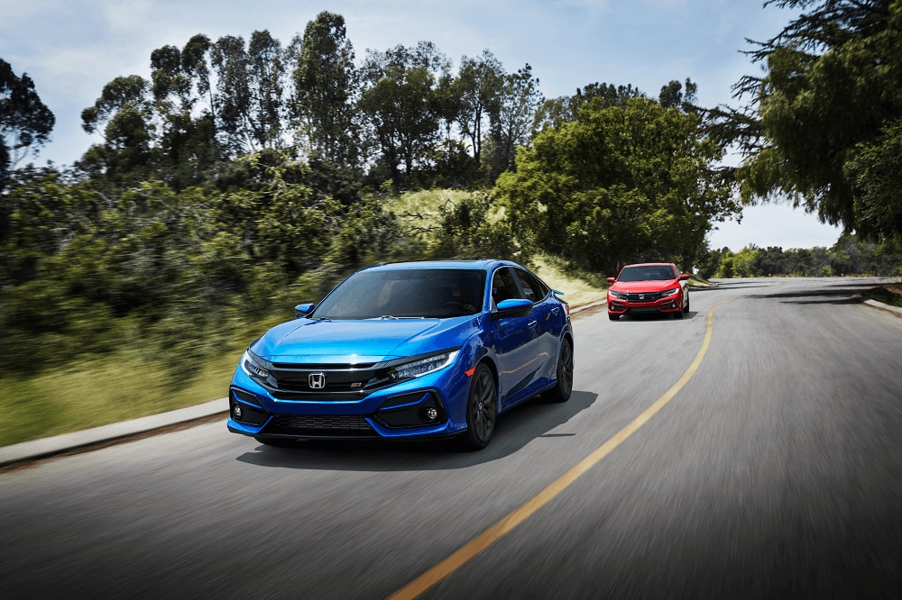 The Honda Civic is equipped with a 2.0L 4-cylinder engine, and the Honda Accord features a 1.5L turbocharged engine. Available on the Honda Civic is a 6-speed manual transmission, though the standard offering is the continuously variable transmission. This transmission delivers efficient shifts.